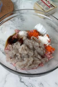 - Massage the mixture well. Don’t just stir it. I punch the mixture first to release the juices from the shrimp, then I really massage it until it turns sticky. It takes about 5 minutes.